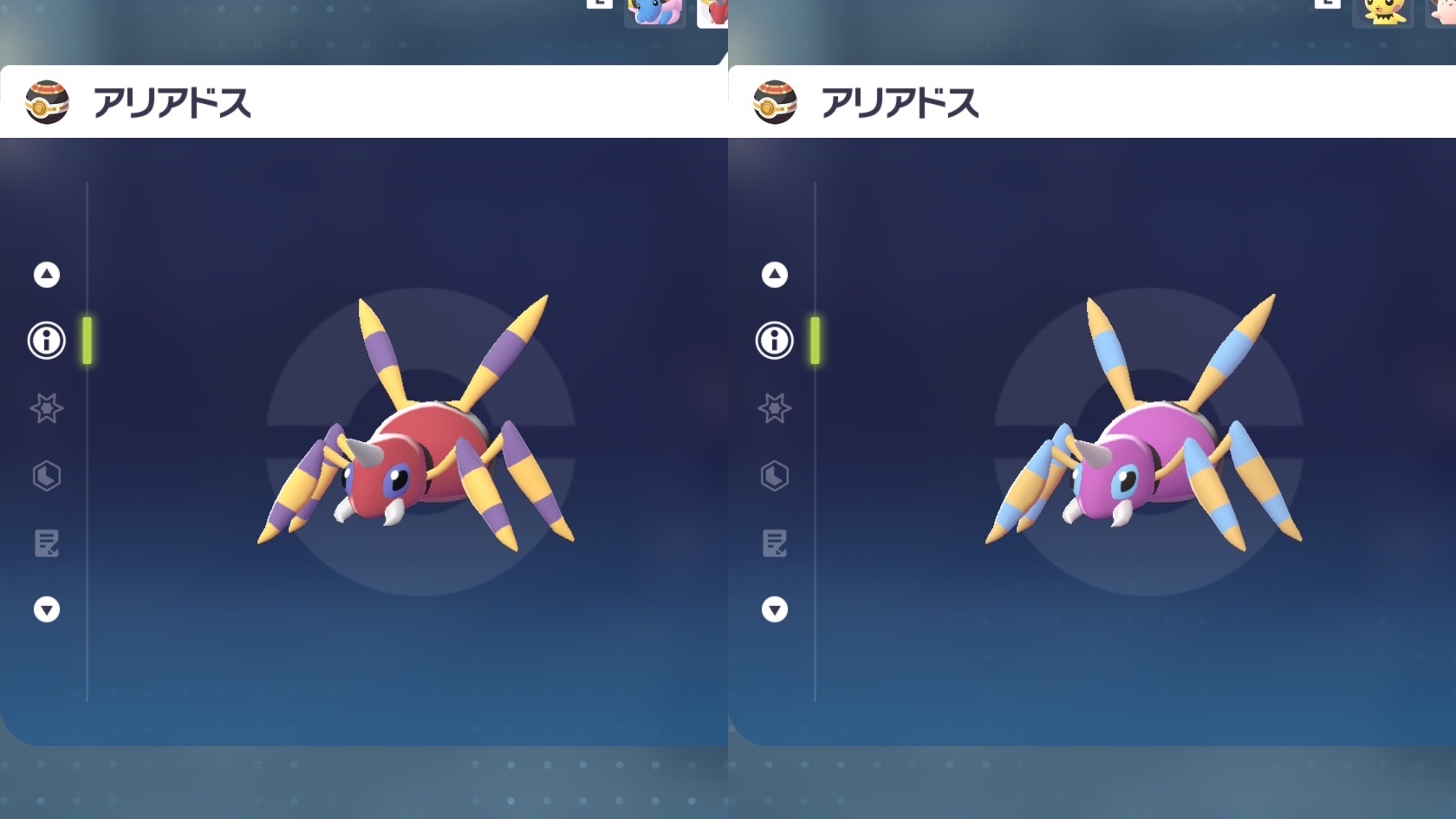 図鑑No.168 『アリアドス』の色違いの見分け方をソフト別に解説