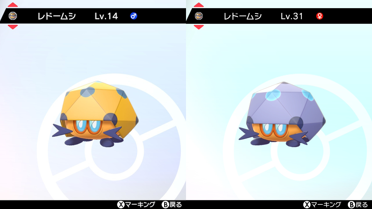 図鑑No.825 『レドームシ』の色違いの見分け方をソフト別に解説