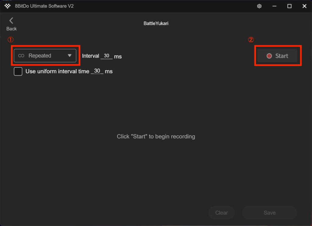 また、一連の操作のインターバルは「Interval」の部分で設定可能です。