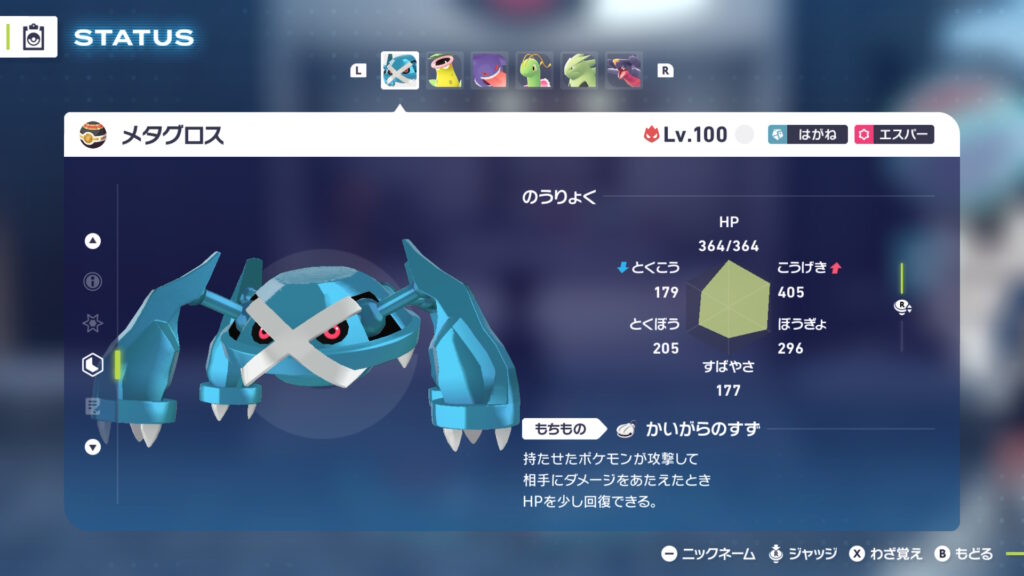 ユカリ戦で使用するポケモンはメタグロスです。