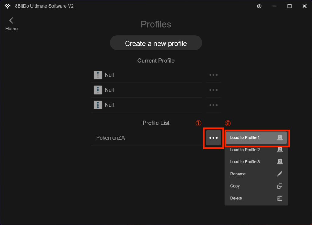 「…」ボタンを押し「Load to Profile 1」を押します。