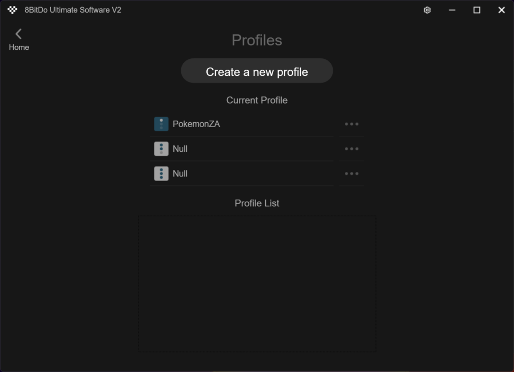 設定が完了すると「PokemonZA」がProfile1に設定されています。