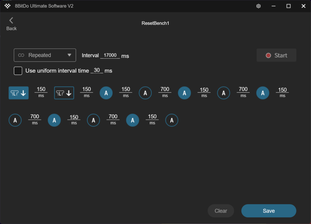 あとは任意のボタンにマクロを設定すれば無限にベンチリセットが可能になります。