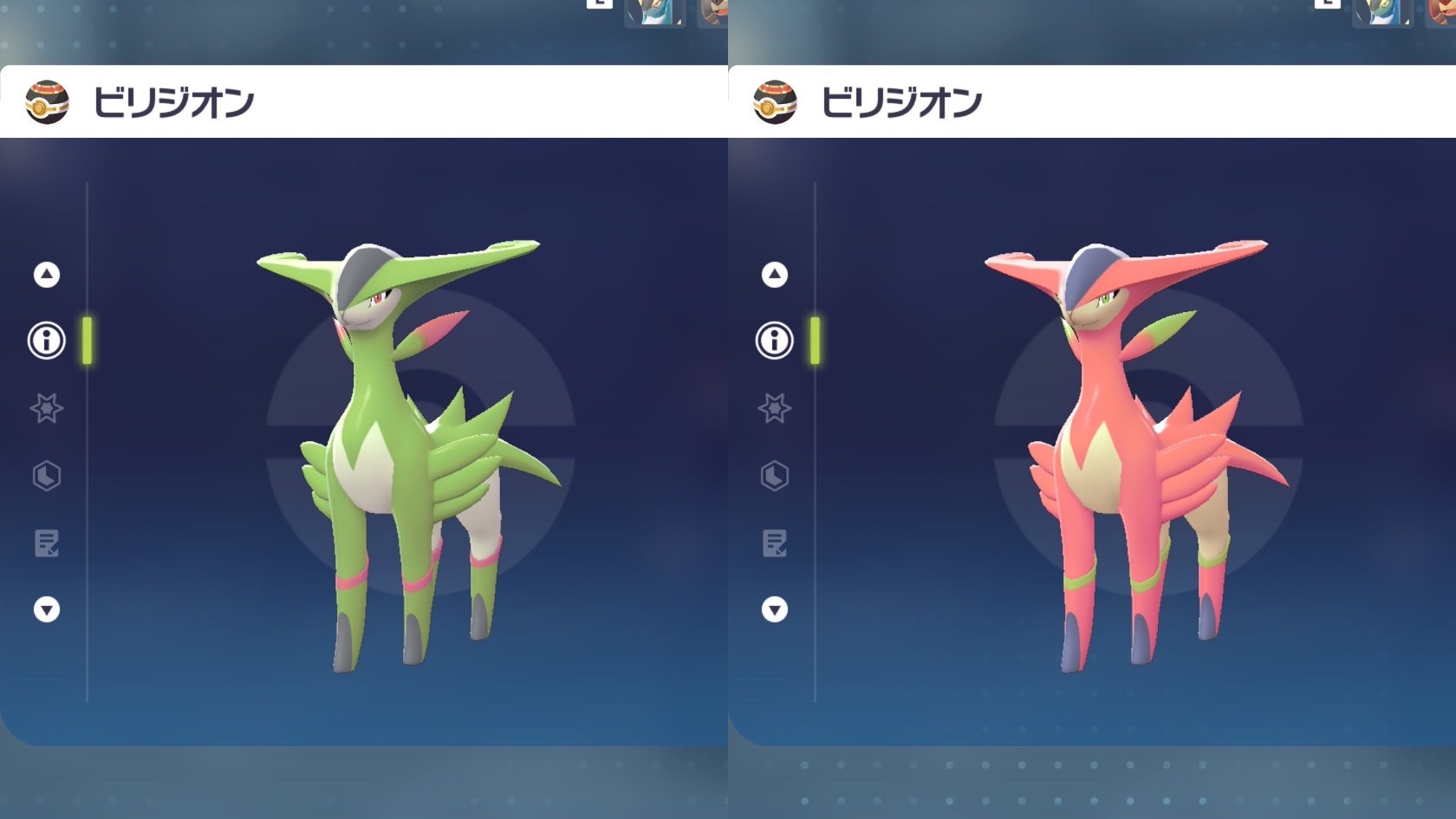 図鑑No.640 『ビリジオン』の色違いの見分け方をソフト別に解説