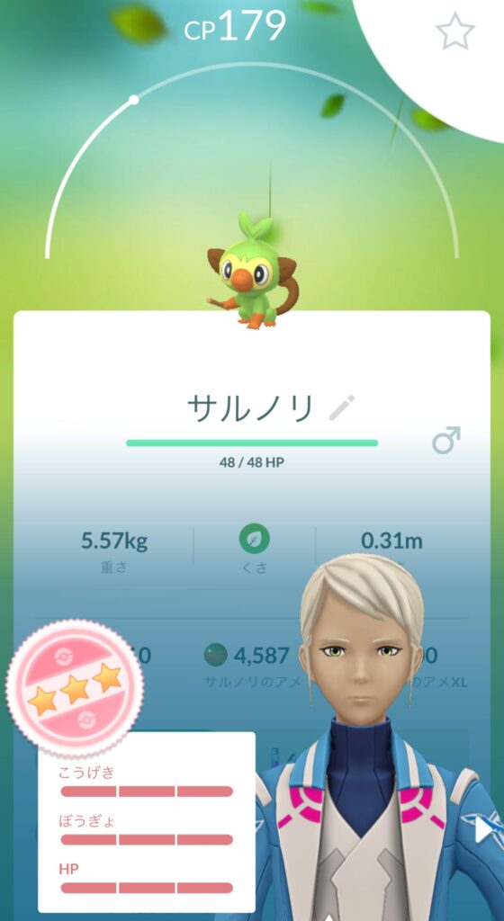 サルノリは最大個体値を1匹も持っていなかったため、今回歩き続けて何とかゲット。