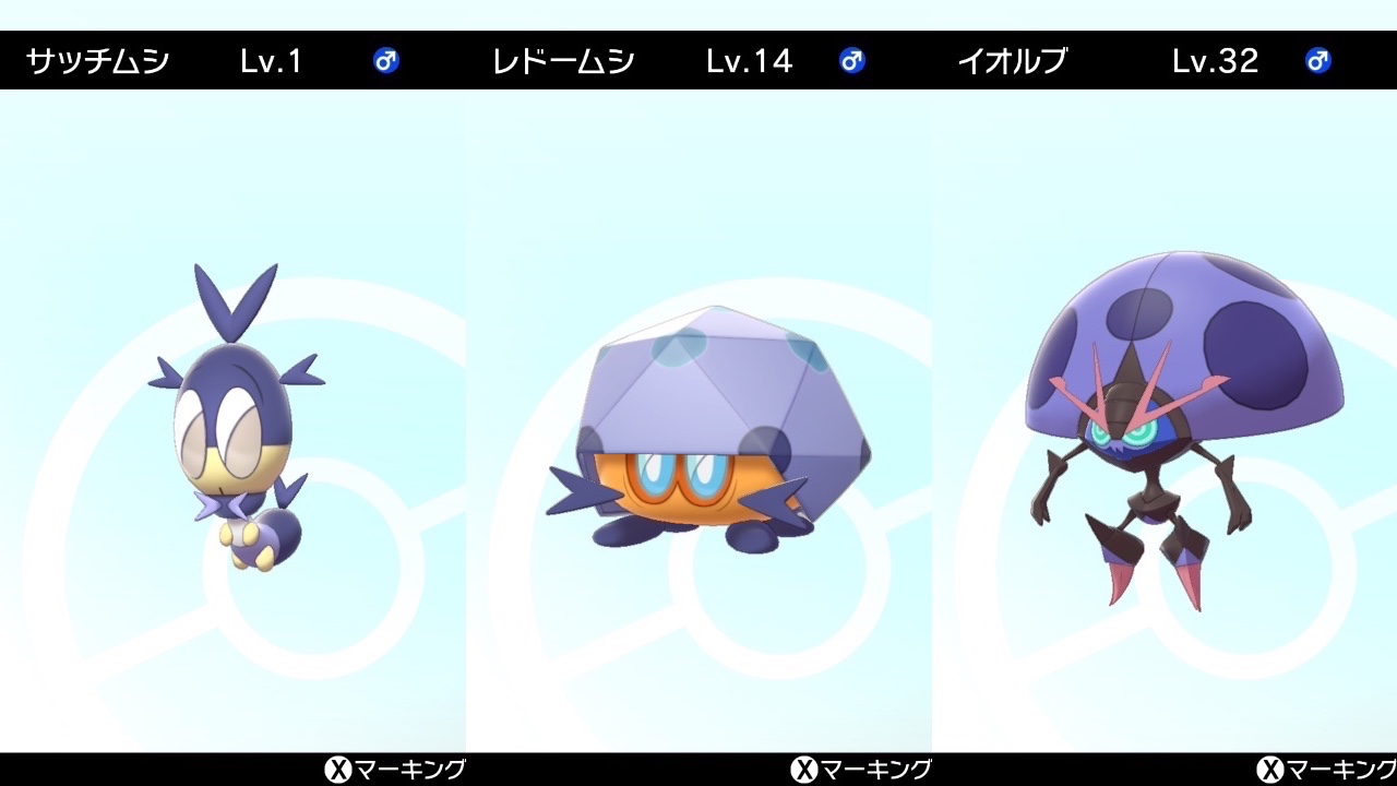 ということでサッチムシの色違いを進化分、性別分ゲット完了。