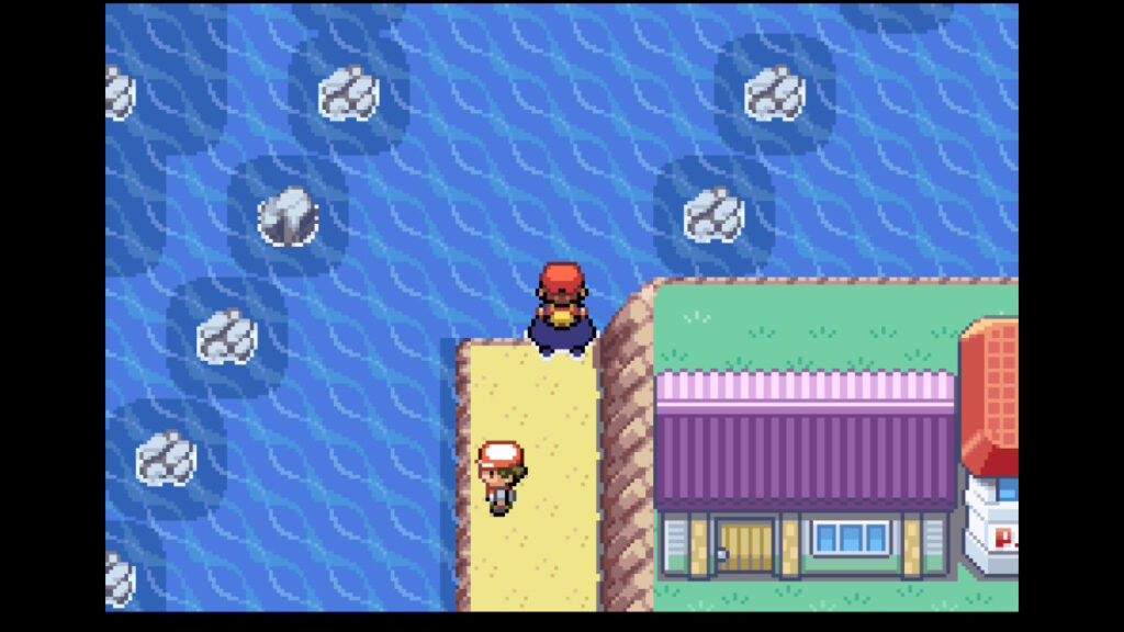 その後ポケモンセンターを出て、砂浜でなみのりをします。
