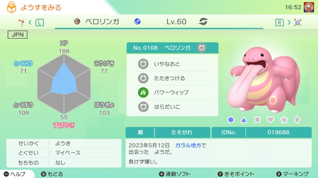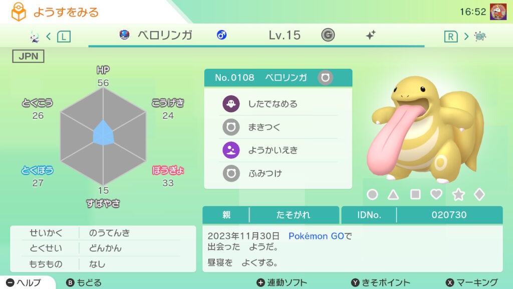 - 色違い(♂)がポケモンGO産のためゴージャスボールではない。