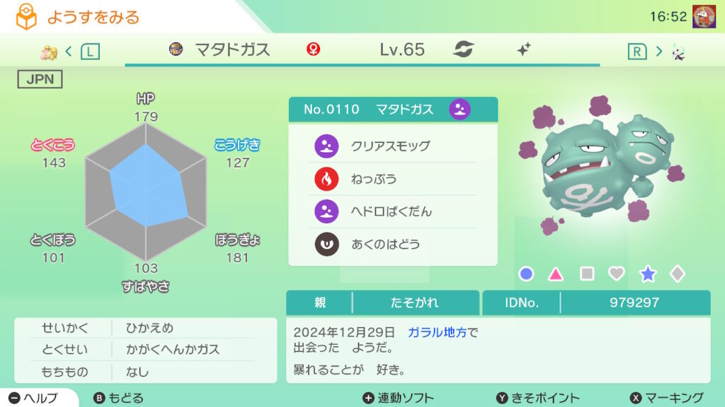 全てのゲット対象個体が”自己産かつゴージャスボール入り”の場合、達成率の横に「★」が付く。