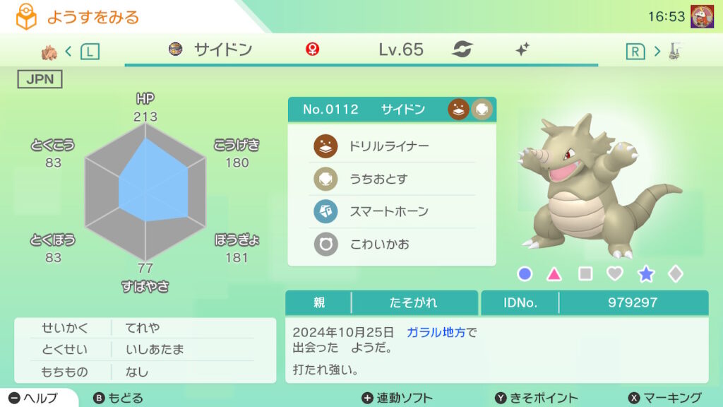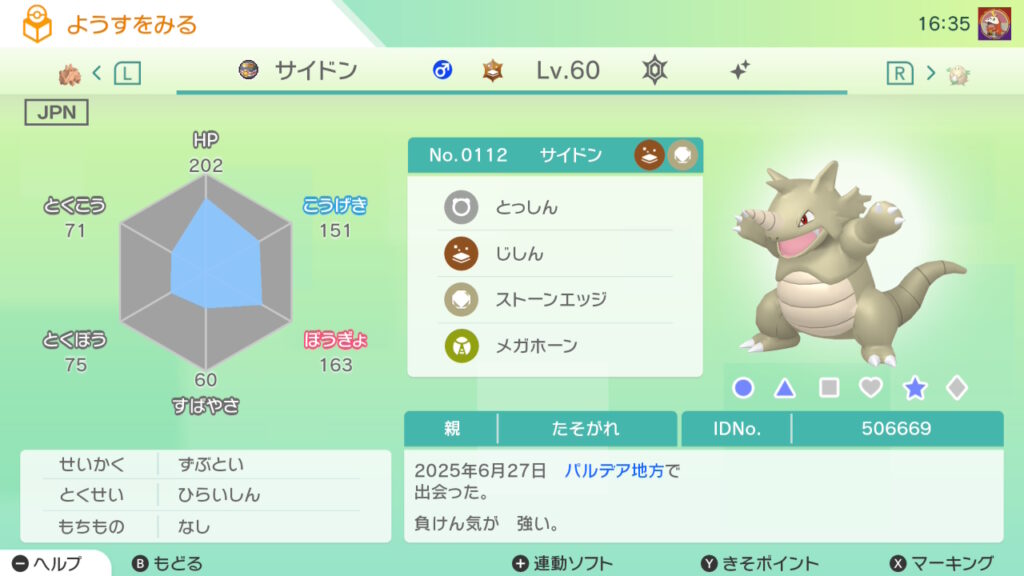 全てのゲット対象個体が”自己産かつゴージャスボール入り”の場合、達成率の横に「★」が付く。