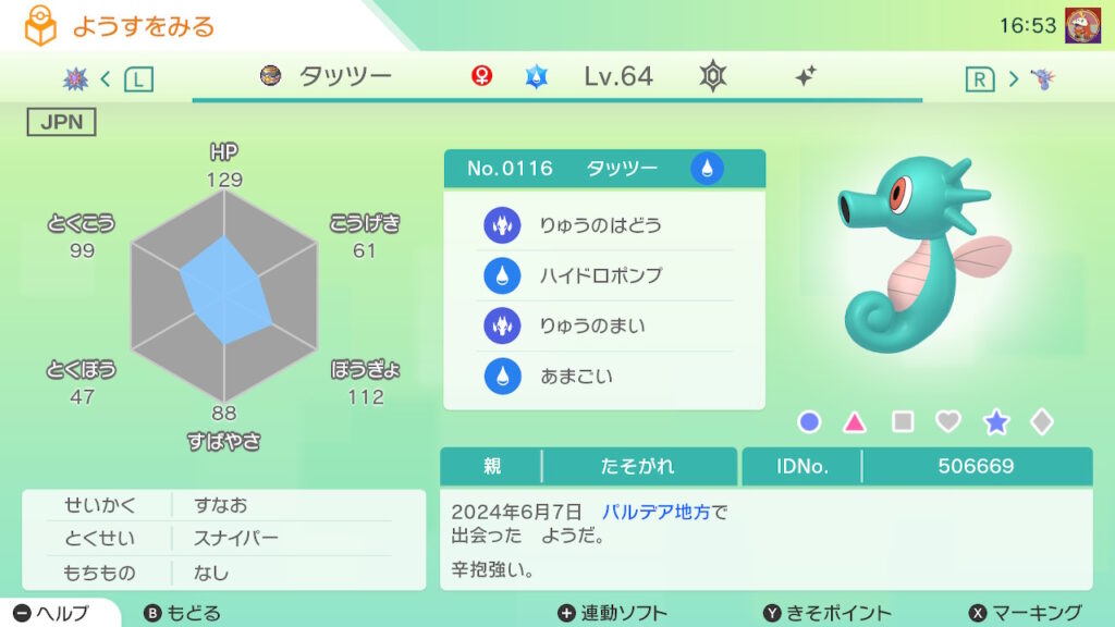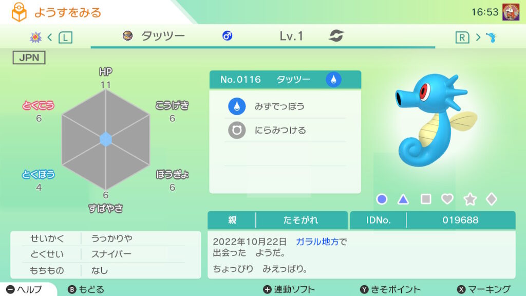 - 夢特性は基本的に性別♀をゲットする。
