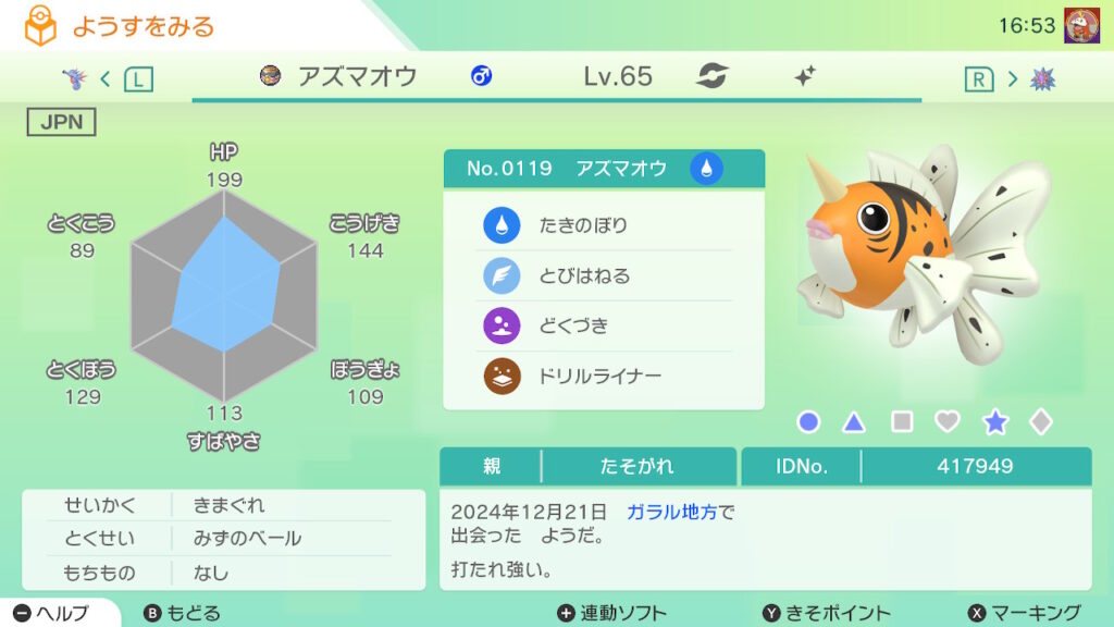 全てのゲット対象個体が”自己産かつゴージャスボール入り”の場合、達成率の横に「★」が付く。