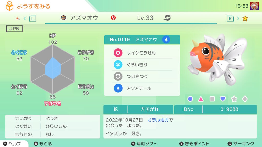 対象の個体をゲットした場合達成率がアップする。(おや名、ボールの指定は無し)