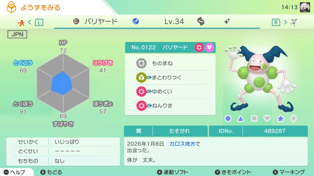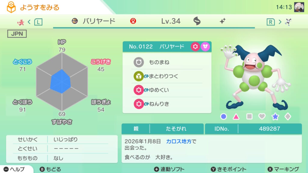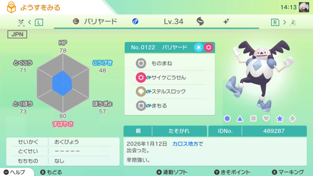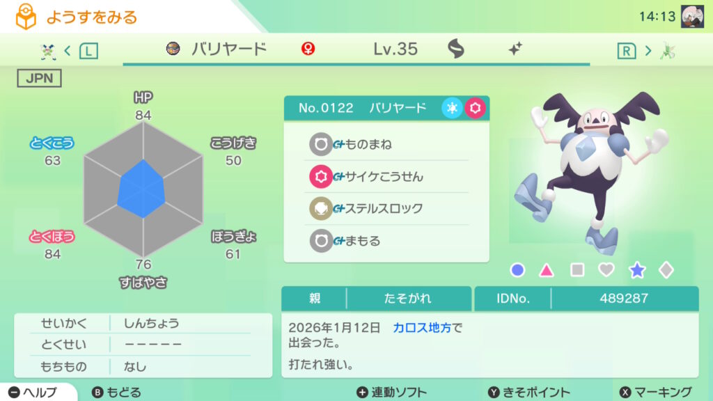 図鑑No.122 『バリヤード』の色違いの見分け方をソフト別に解説