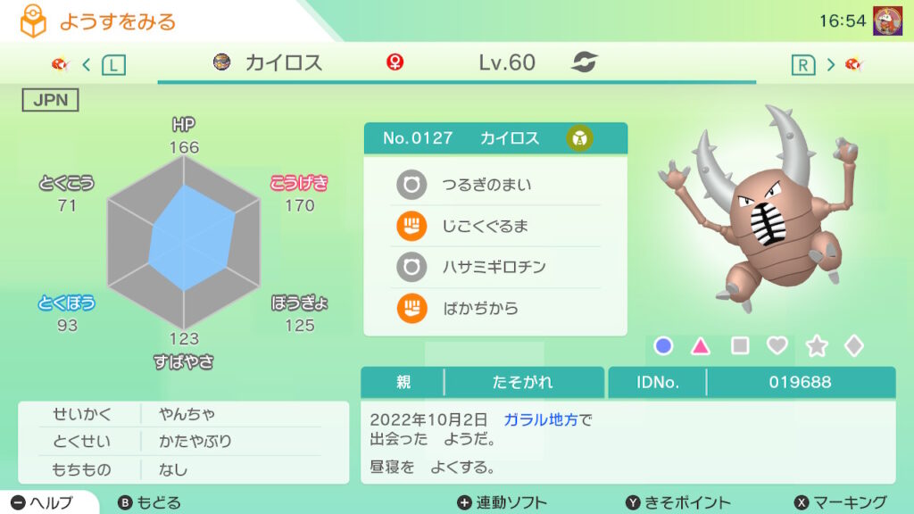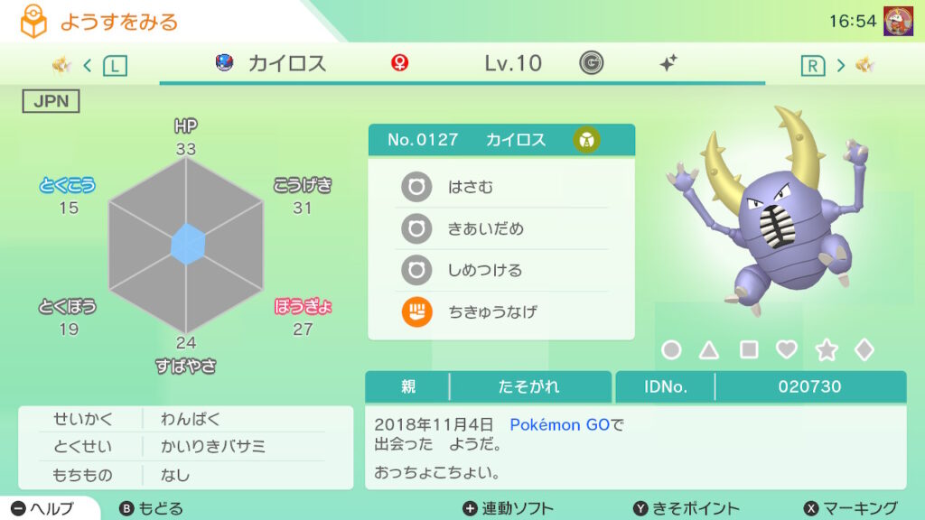 - 色違い(♀)がポケモンGO産のためゴージャスボールではない。