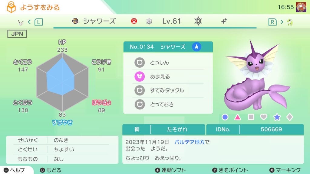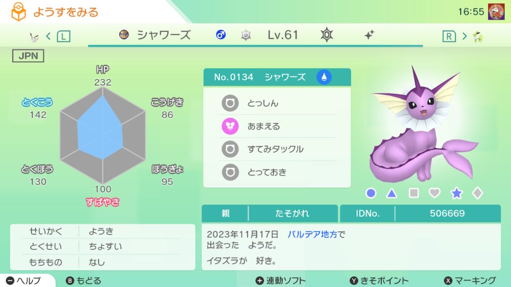 全てのゲット対象個体が”自己産かつゴージャスボール入り”の場合、達成率の横に「★」が付く。