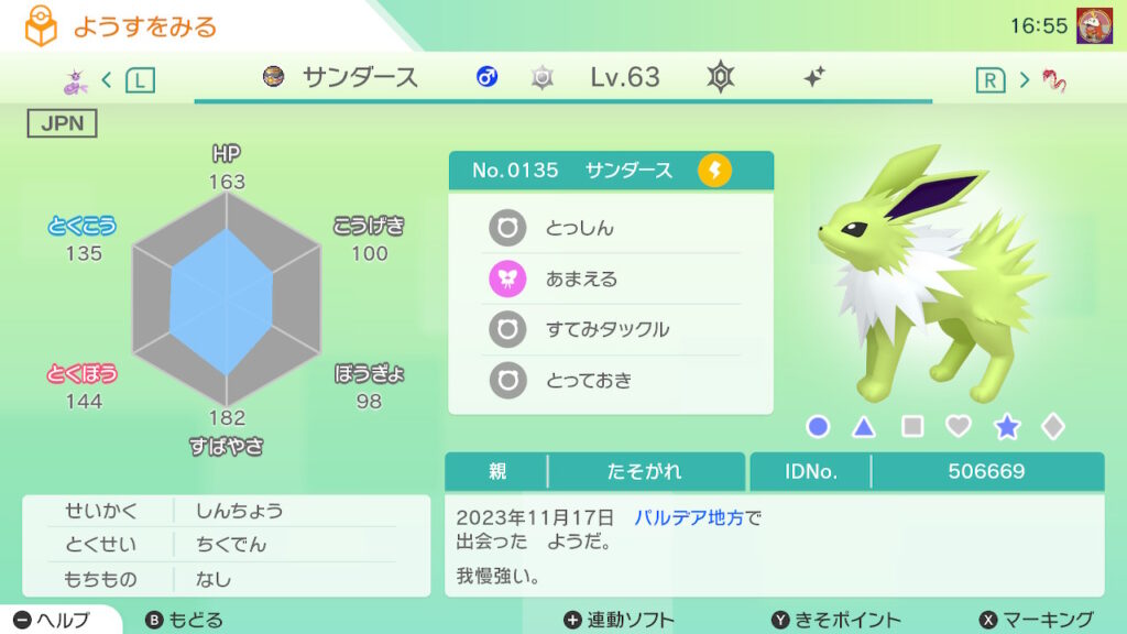 全てのゲット対象個体が”自己産かつゴージャスボール入り”の場合、達成率の横に「★」が付く。