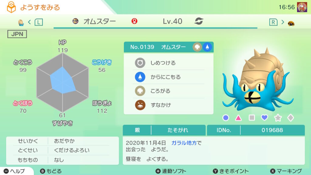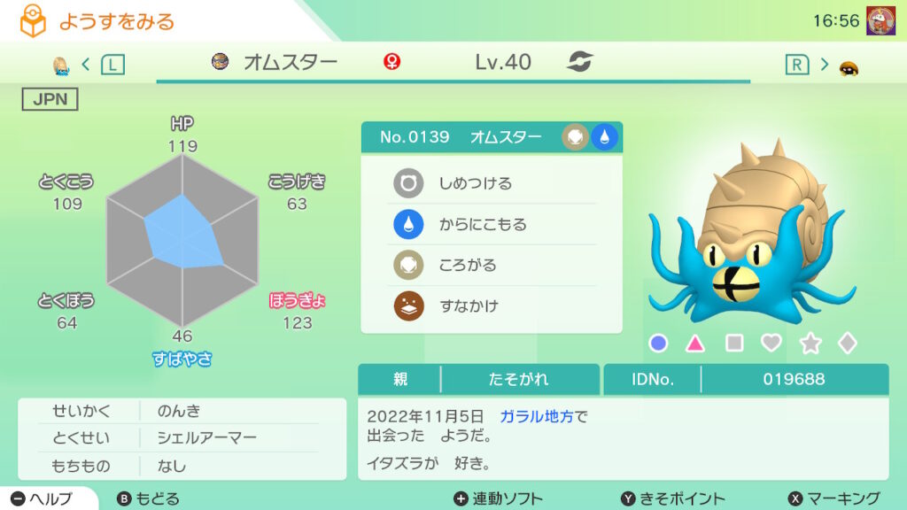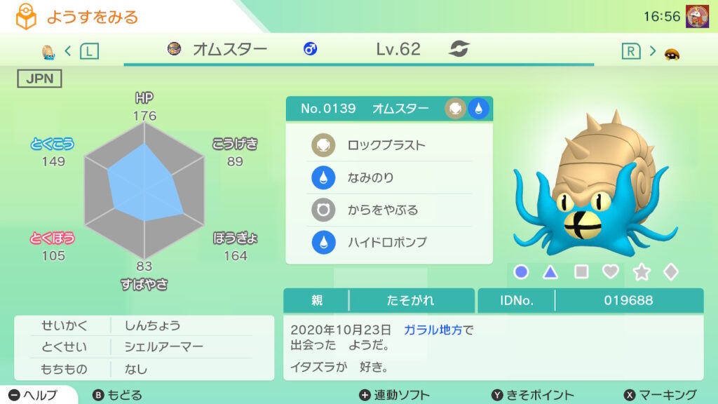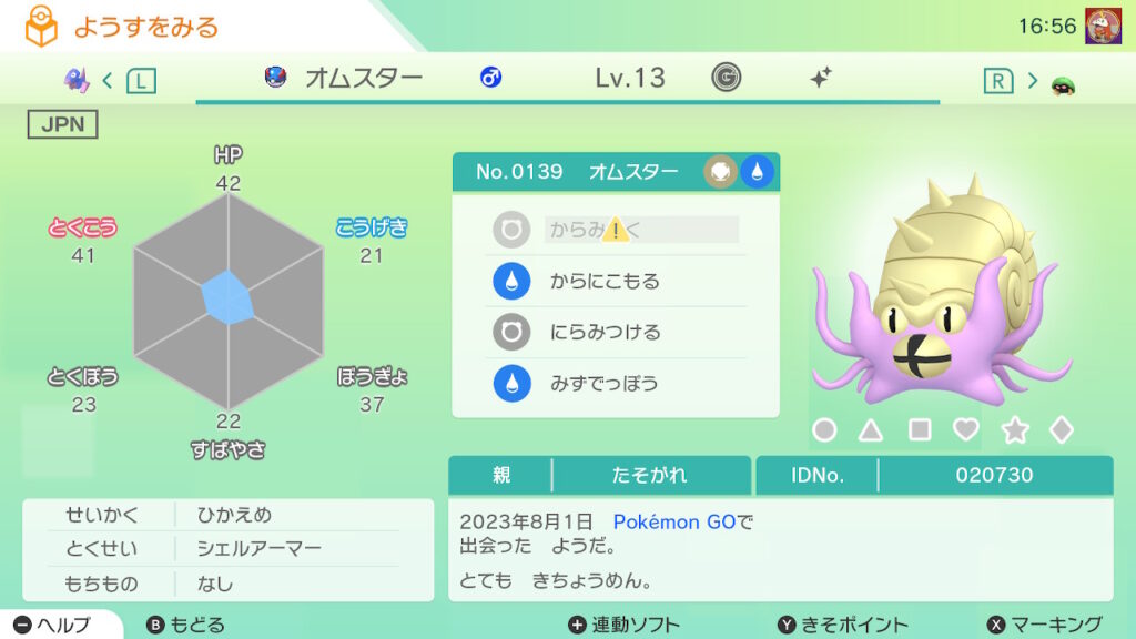- 色違い(♂)がポケモンGO産のためゴージャスボールではない。