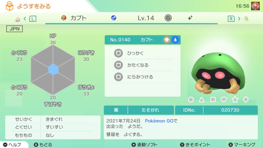 - 色違い(♂)がポケモンGO産のためゴージャスボールではない。