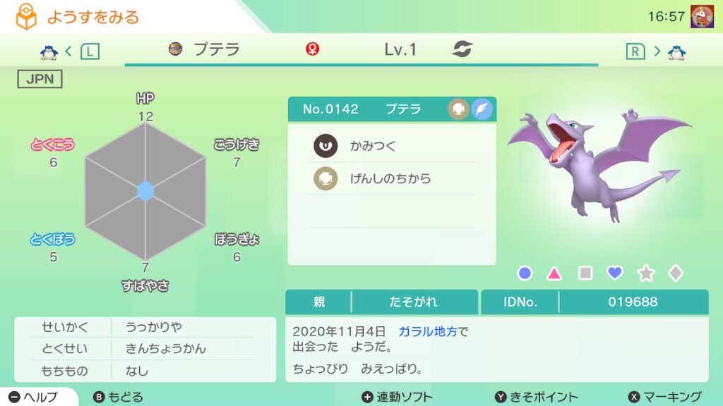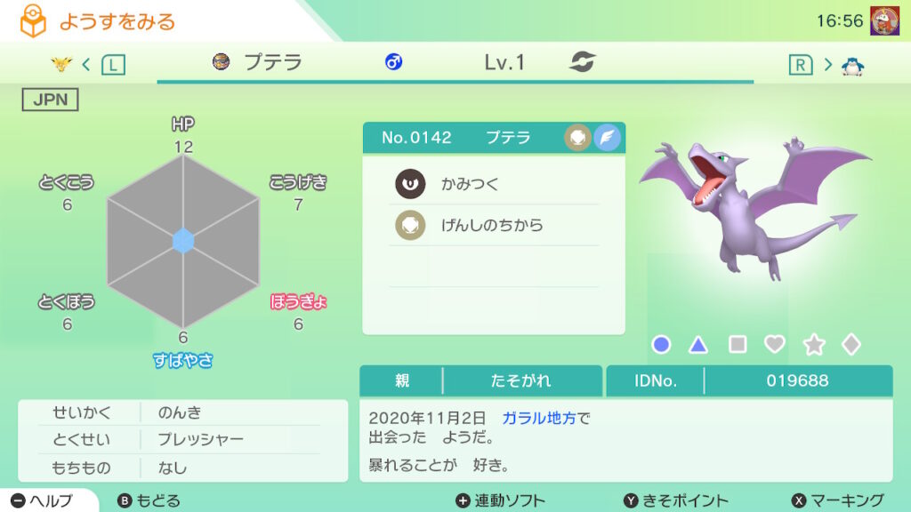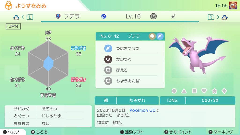 - 色違い(♂)がポケモンGO産のためゴージャスボールではない。