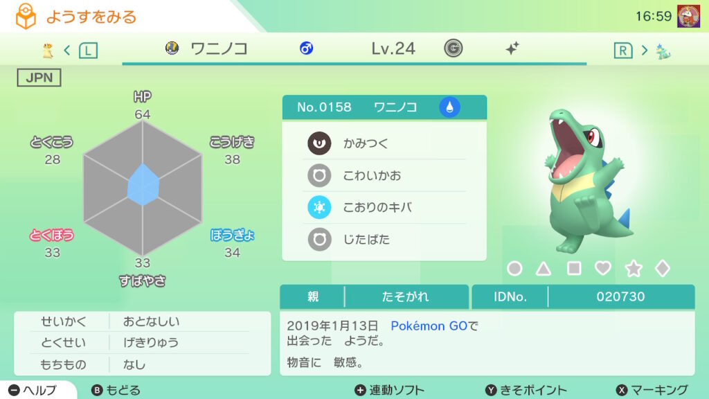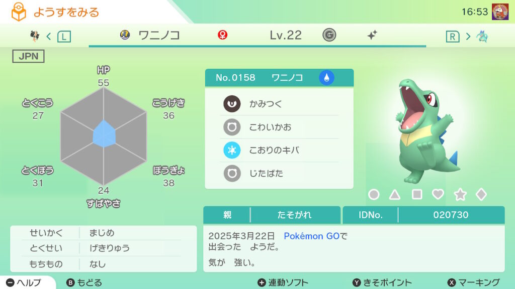 - 色違い(♂)がポケモンGO産のためゴージャスボールではない。