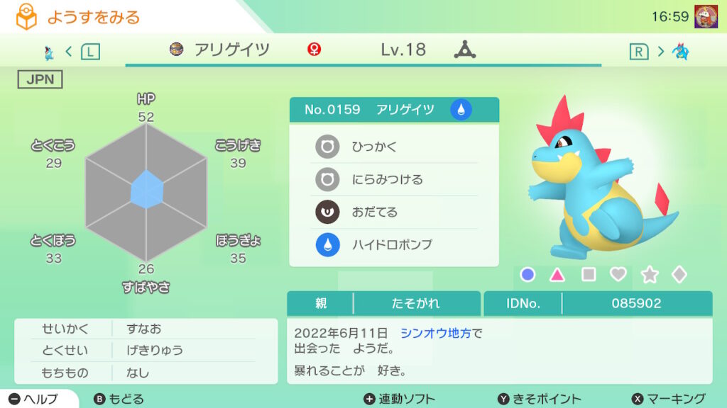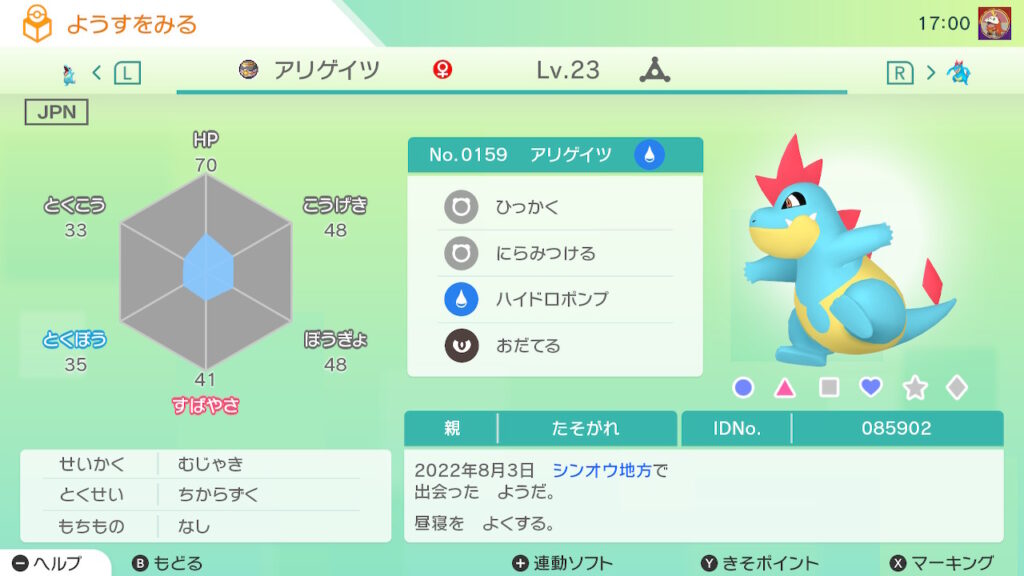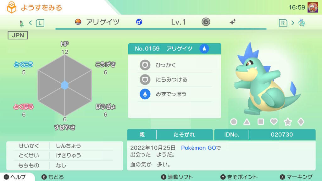 - 色違い(♀)がポケモンGO産のためゴージャスボールではない。