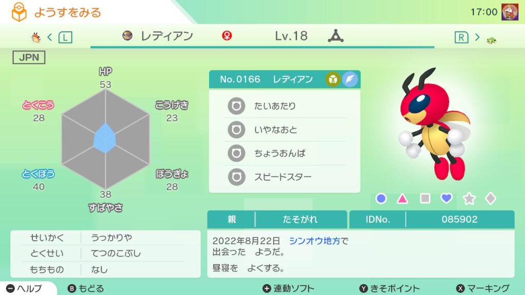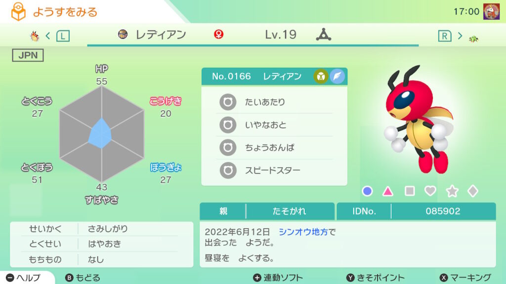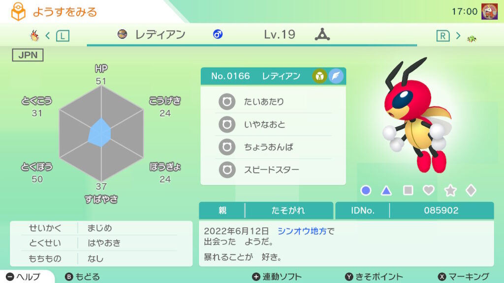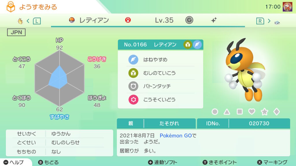 - 色違い(♀)がポケモンGO産のためゴージャスボールではない。