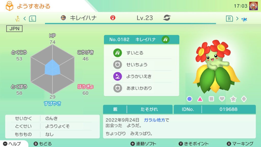 対象の個体をゲットした場合達成率がアップする。(おや名、ボールの指定は無し)