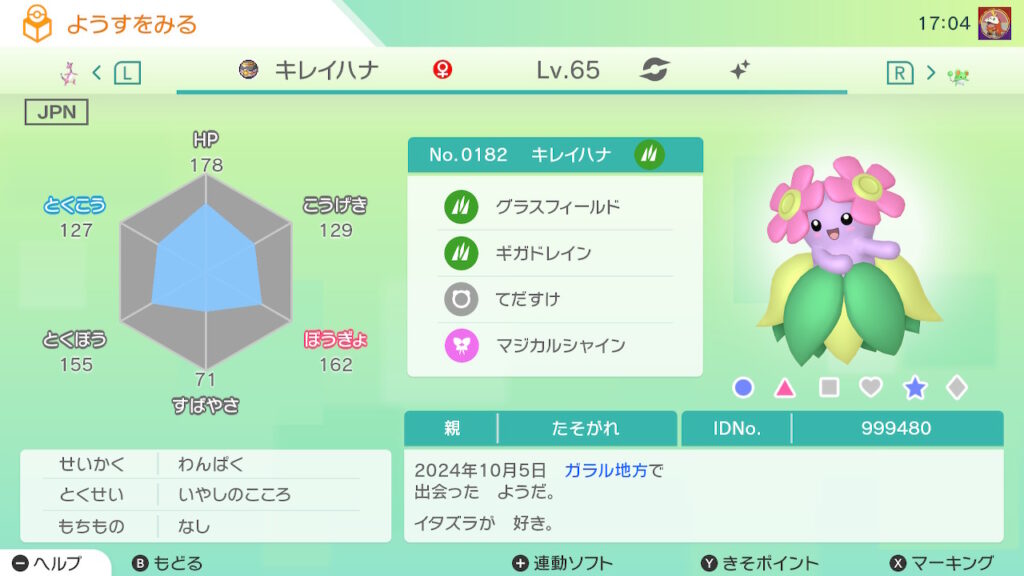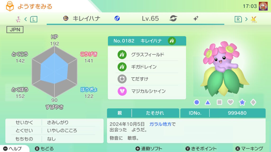 全てのゲット対象個体が”自己産かつゴージャスボール入り”の場合、達成率の横に「★」が付く。