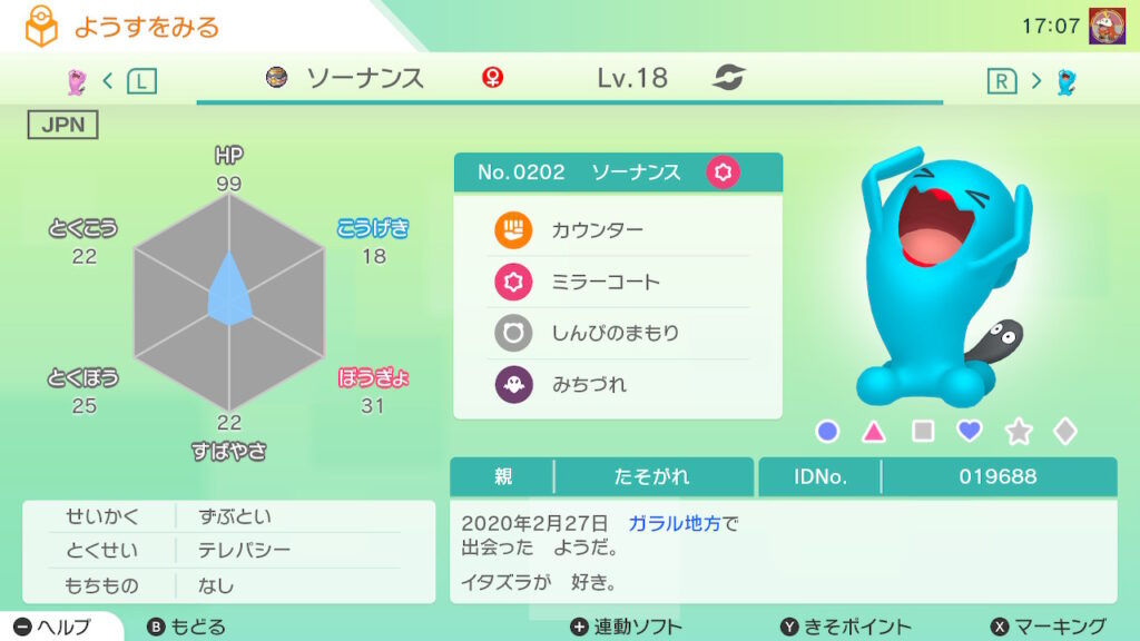 - 色違い(♂)を未所持。