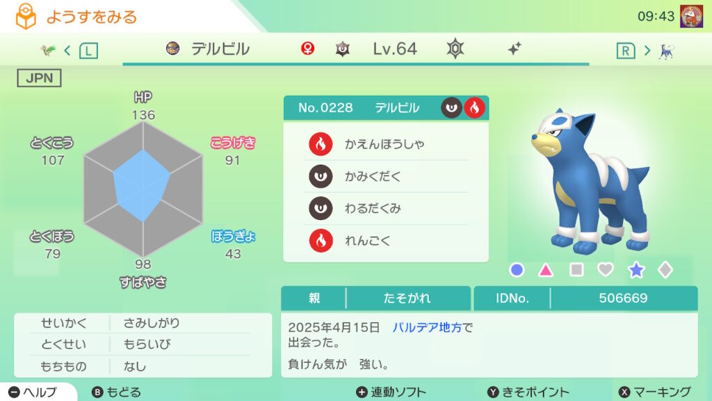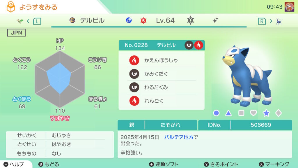 全てのゲット対象個体が”自己産かつゴージャスボール入り”の場合、達成率の横に「★」が付く。