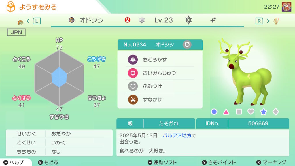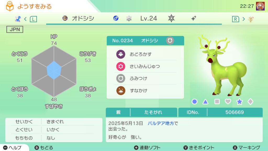全てのゲット対象個体が”自己産かつゴージャスボール入り”の場合、達成率の横に「★」が付く。