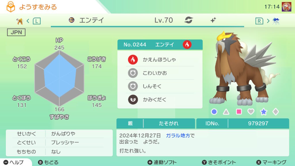 全てのゲット対象個体が”自己産かつゴージャスボール入り”の場合、達成率の横に「★」が付く。