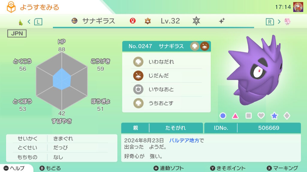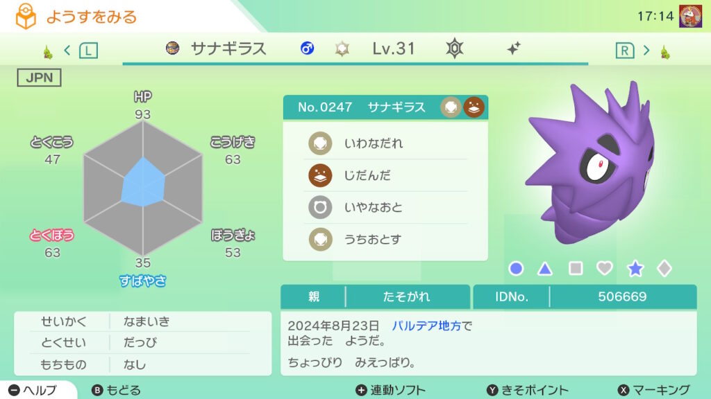 全てのゲット対象個体が”自己産かつゴージャスボール入り”の場合、達成率の横に「★」が付く。