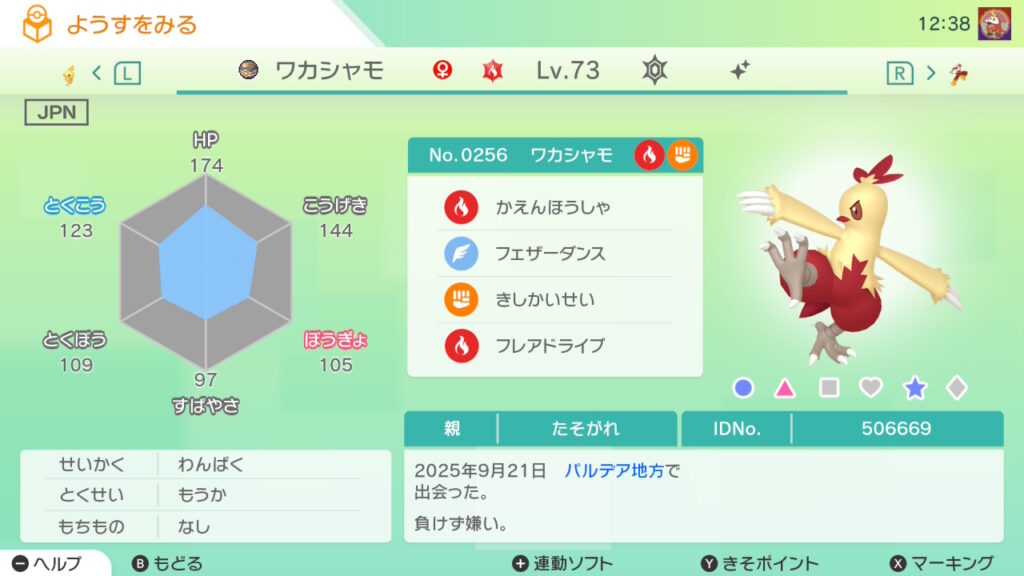 全てのゲット対象個体が”自己産かつゴージャスボール入り”の場合、達成率の横に「★」が付く。
