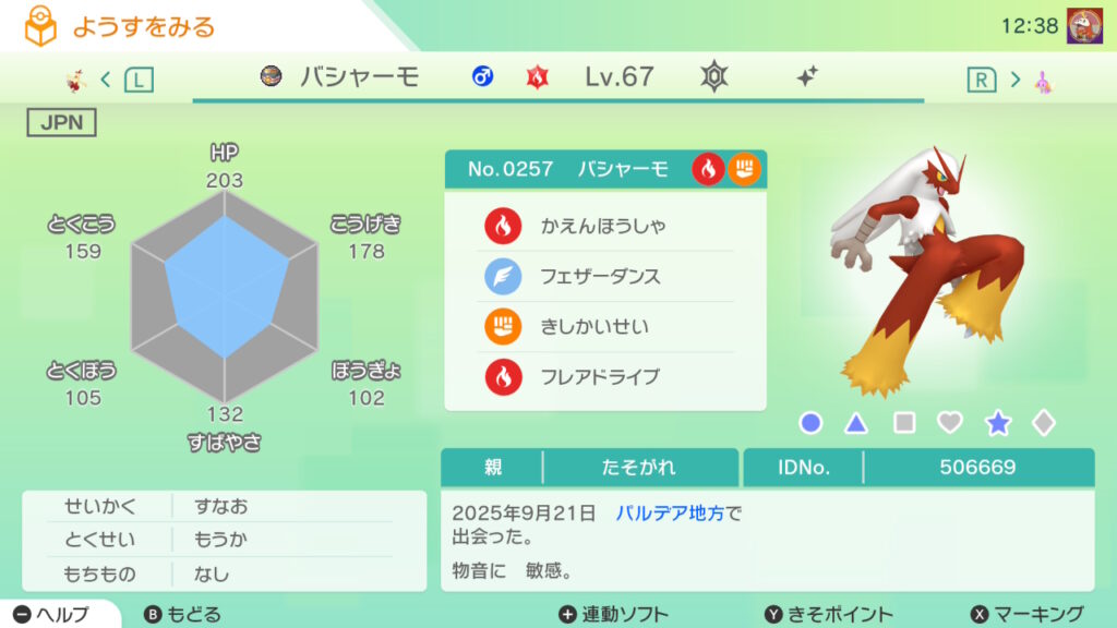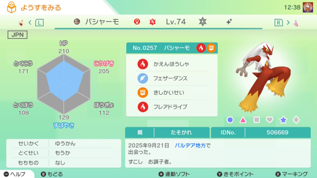 全てのゲット対象個体が”自己産かつゴージャスボール入り”の場合、達成率の横に「★」が付く。