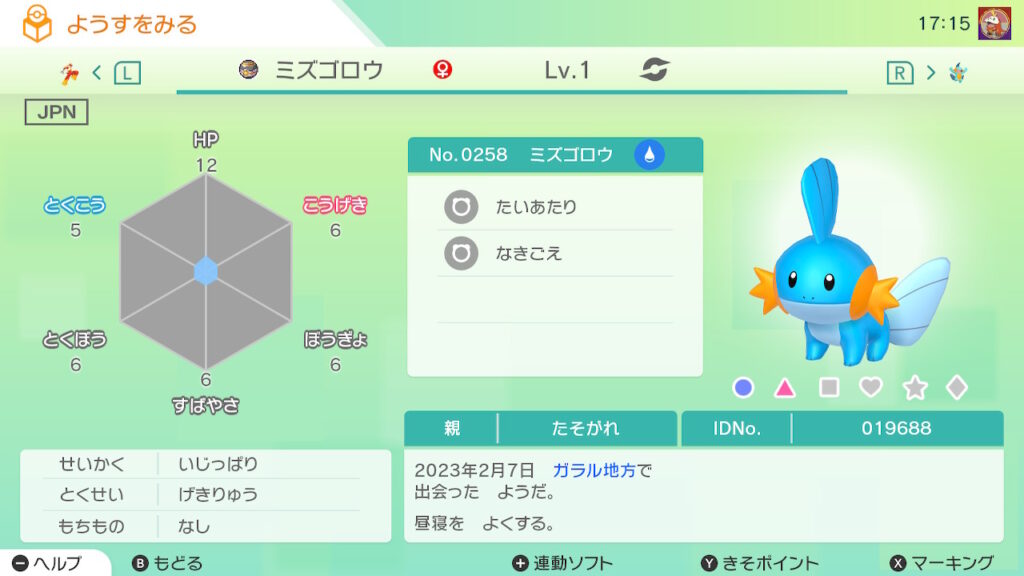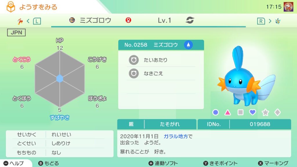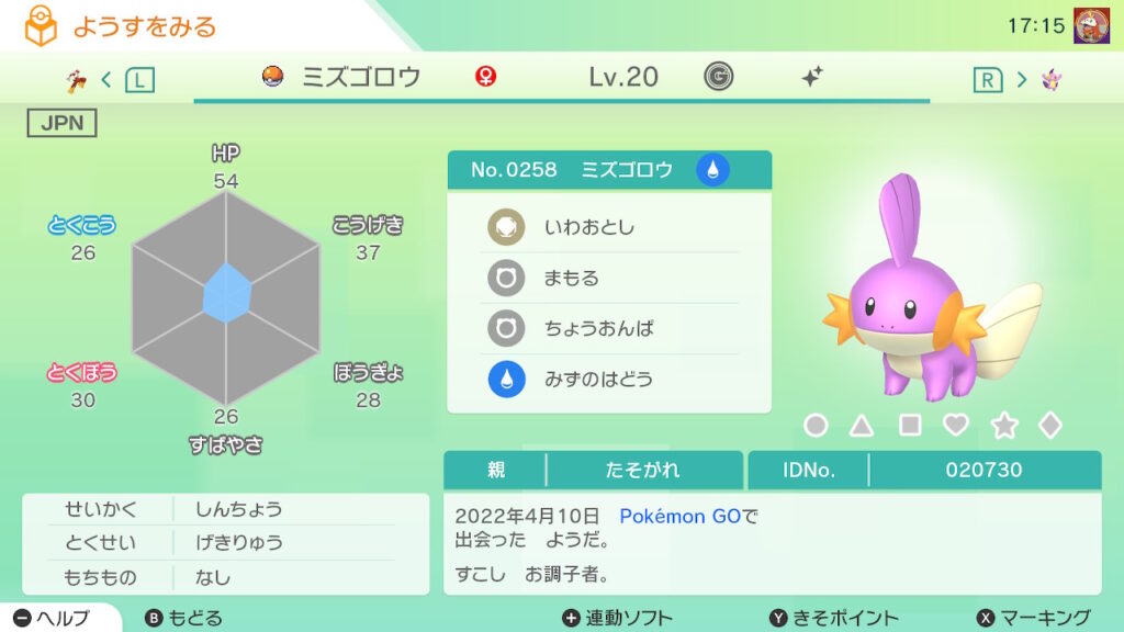 - 色違い(♀)がポケモンGO産のためゴージャスボールではない。