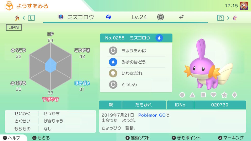 - 色違い(♂)がポケモンGO産のためゴージャスボールではない。