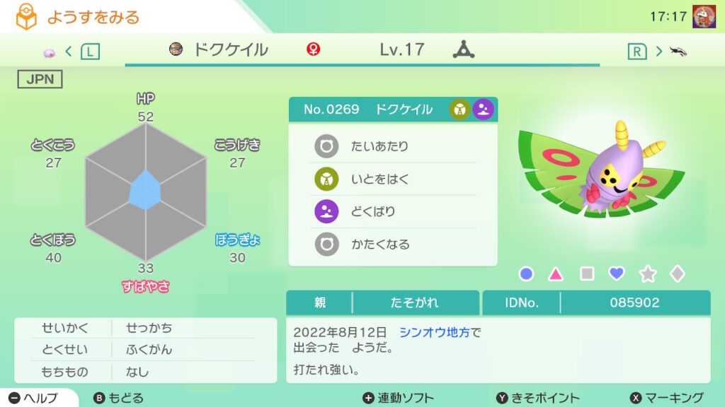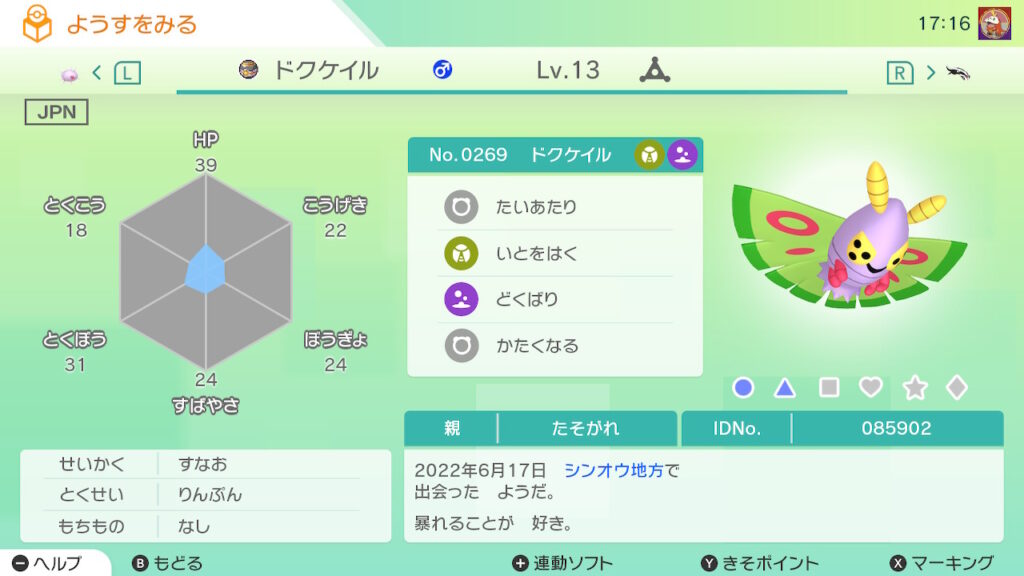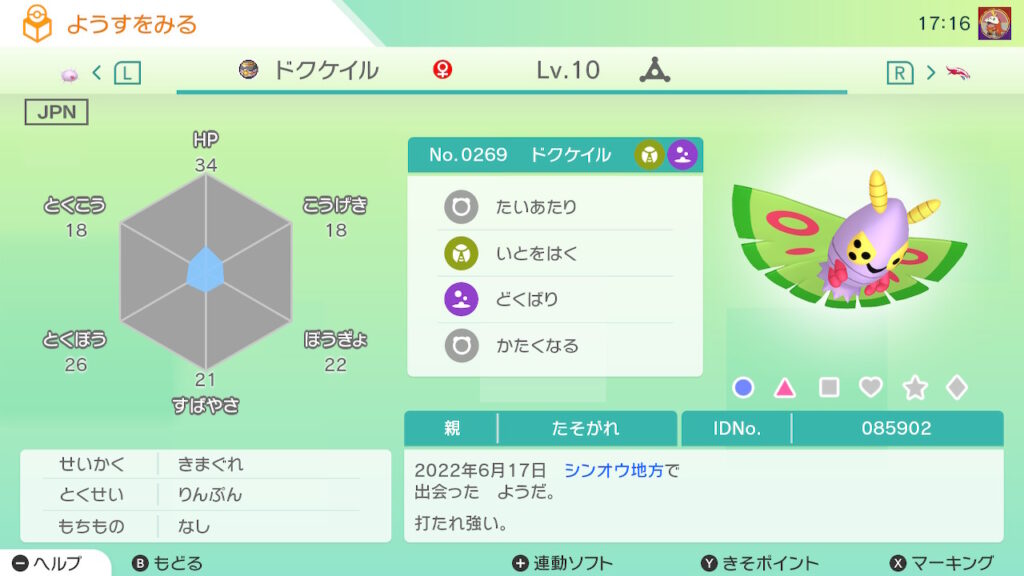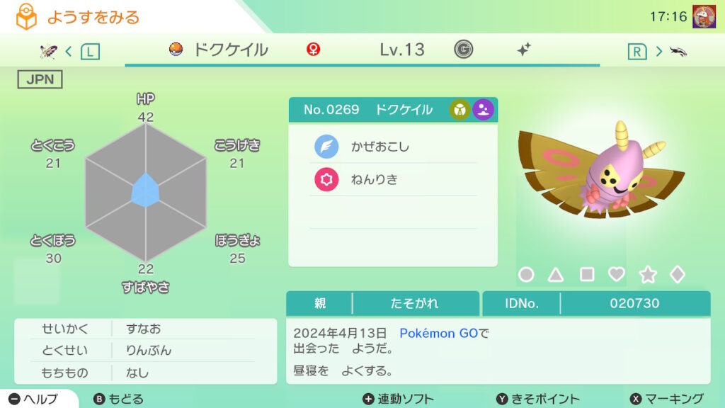 - 色違い(♀)がポケモンGO産のためゴージャスボールではない。