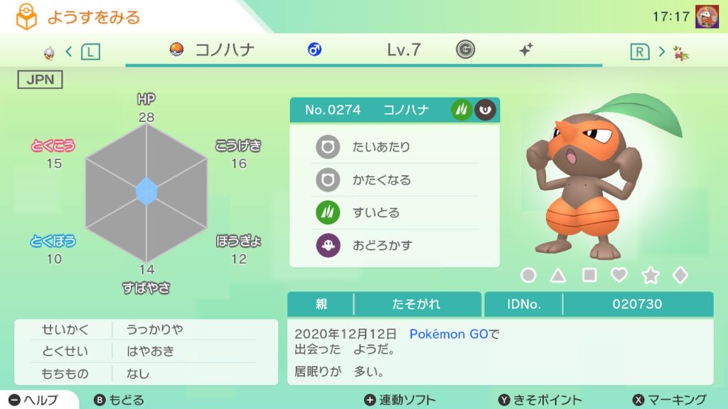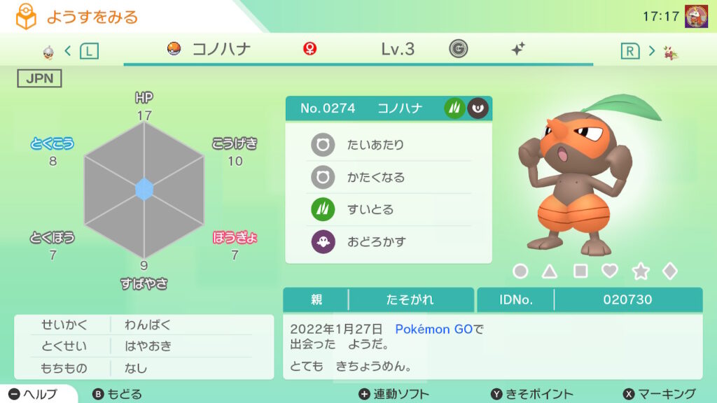- 色違い(♀)がポケモンGO産のためゴージャスボールではない。