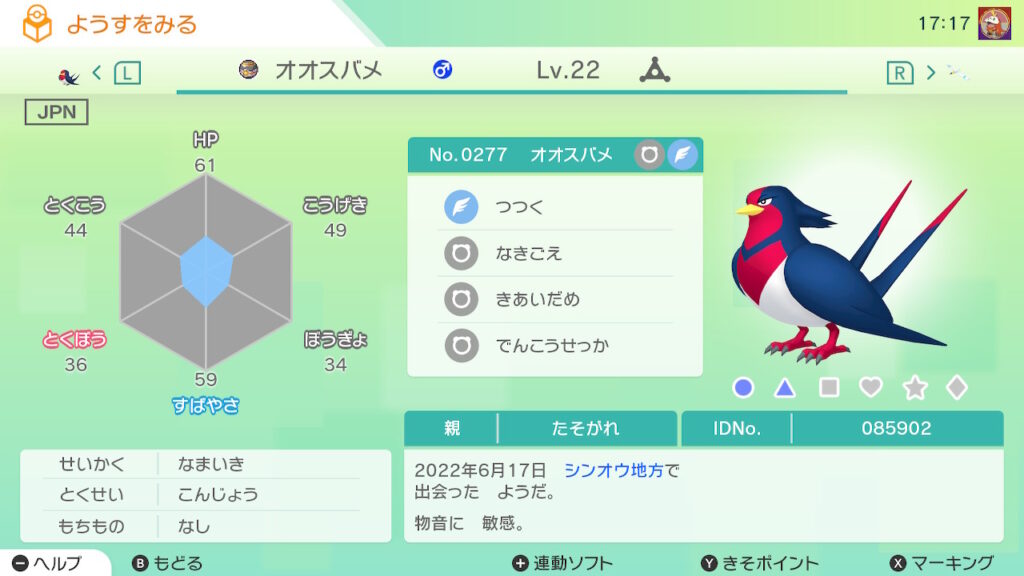 - 色違い(♀)を未所持。