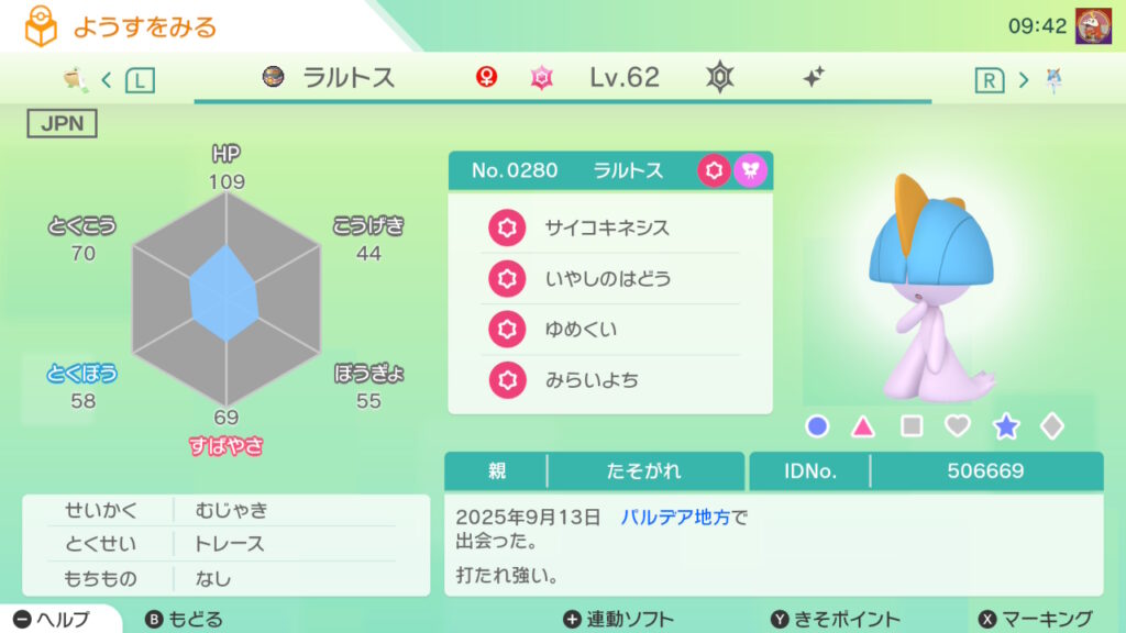 全てのゲット対象個体が”自己産かつゴージャスボール入り”の場合、達成率の横に「★」が付く。