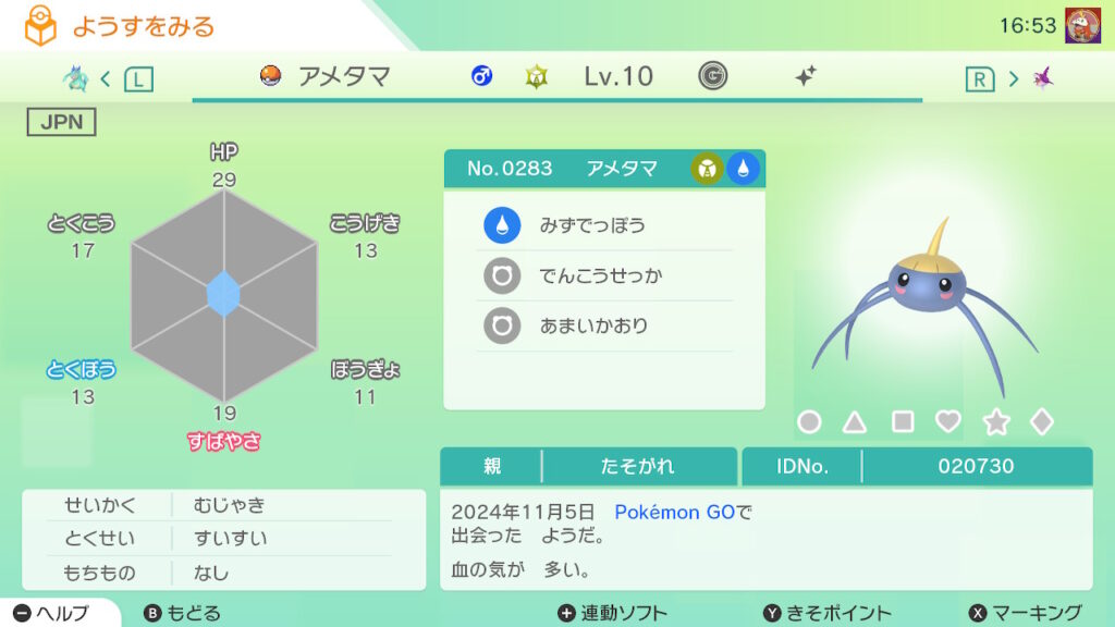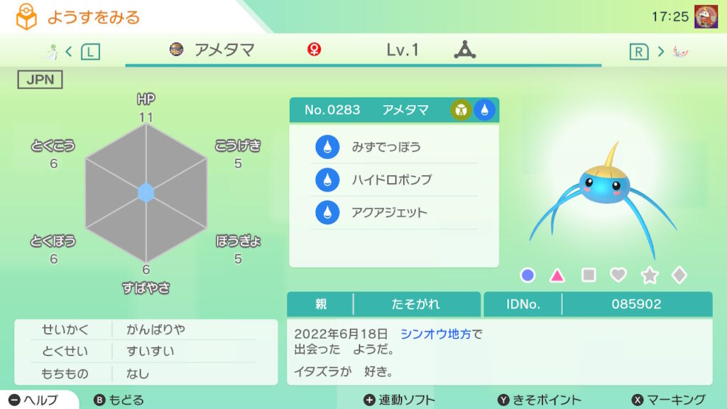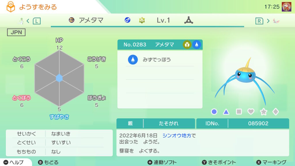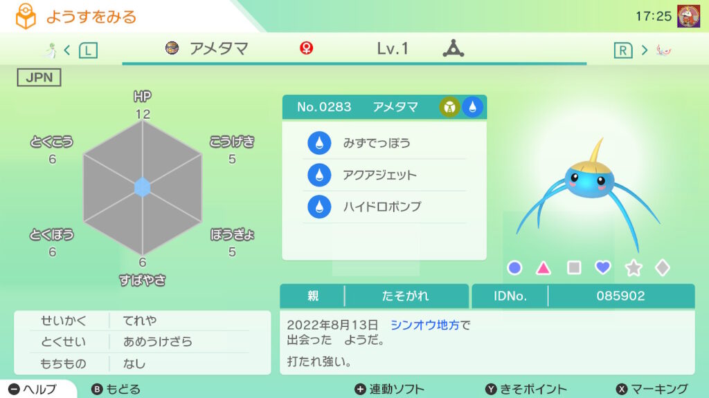 - 色違い(♂)がポケモンGO産のためゴージャスボールではない。
