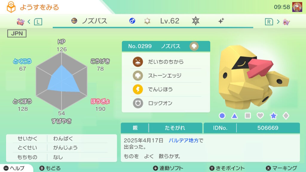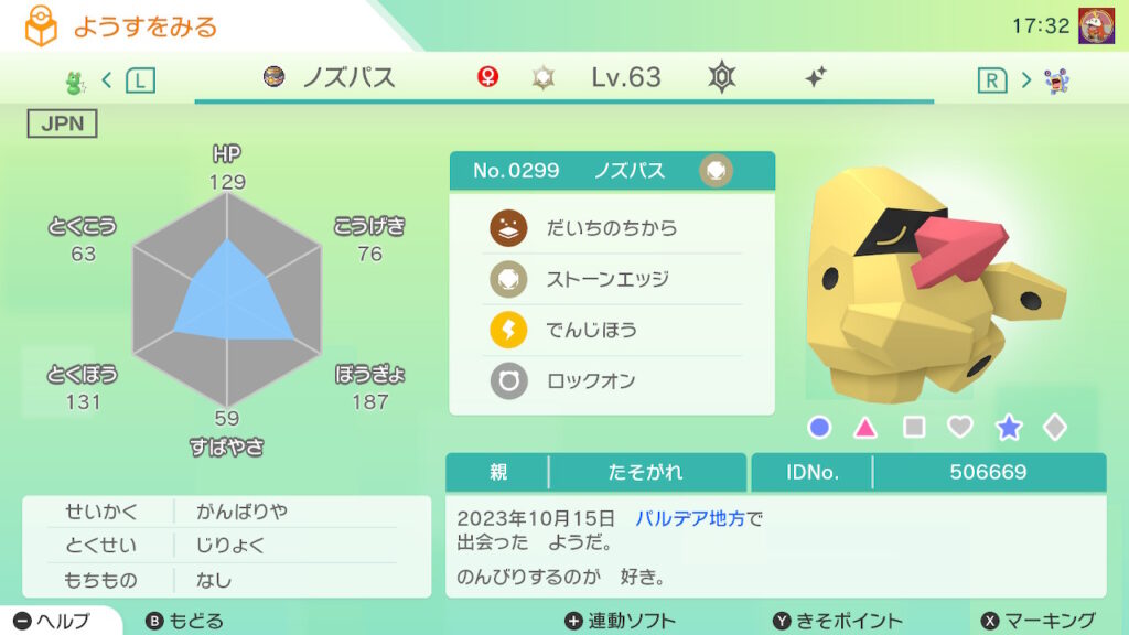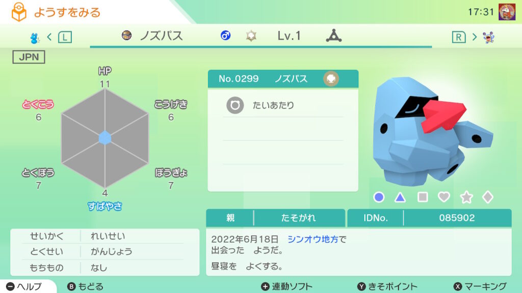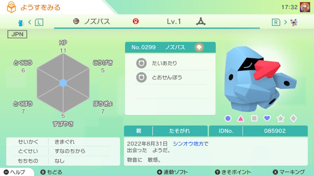 図鑑No.299 『ノズパス』の色違いの見分け方をソフト別に解説