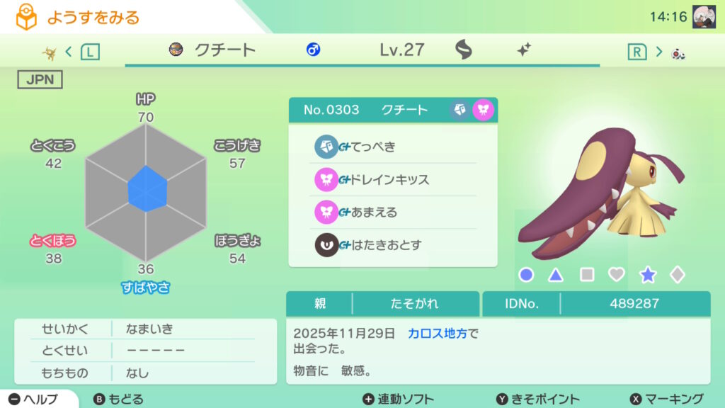 全てのゲット対象個体が”自己産かつゴージャスボール入り”の場合、達成率の横に「★」が付く。