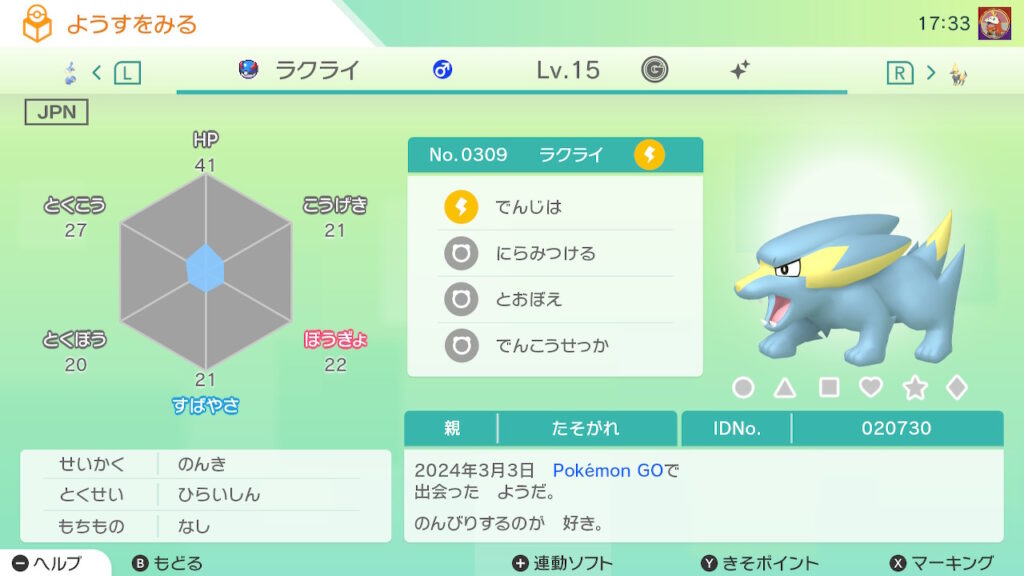 - 色違い(♂)がポケモンGO産のためゴージャスボールではない。
