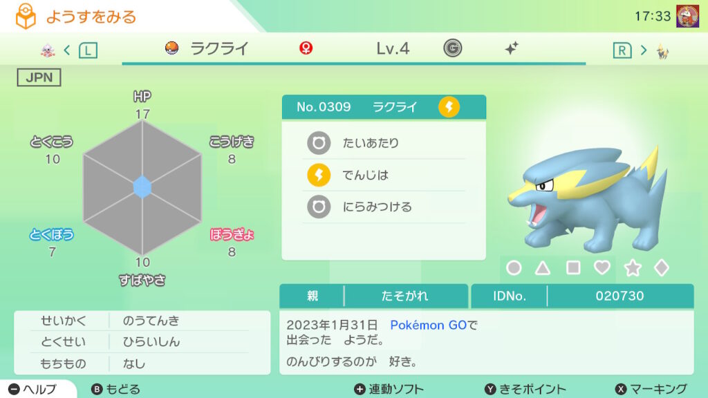 - 色違い(♀)がポケモンGO産のためゴージャスボールではない。