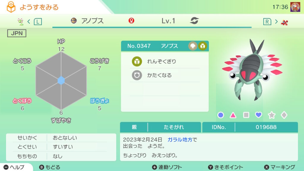 - 色違い(♀)を未所持。