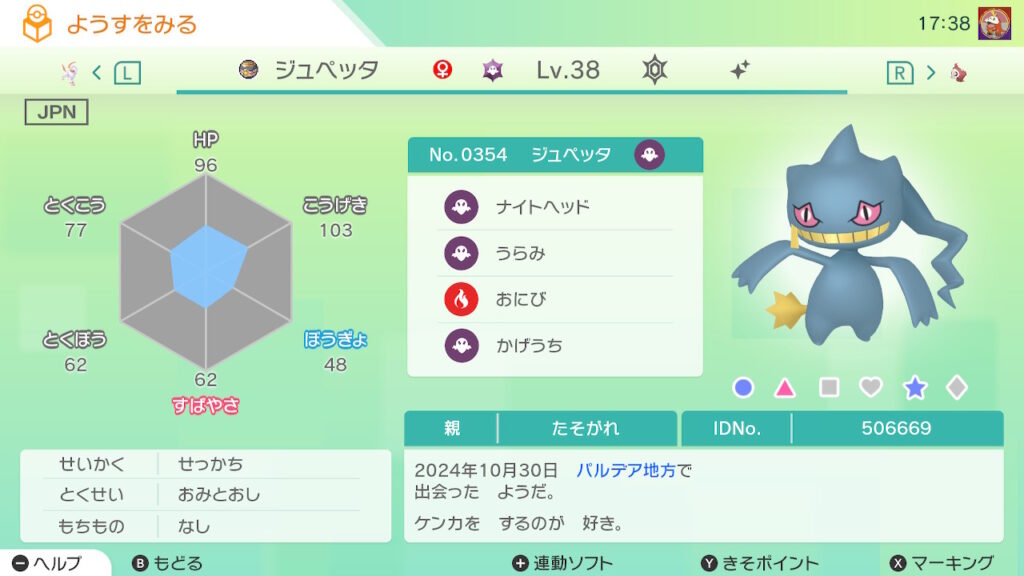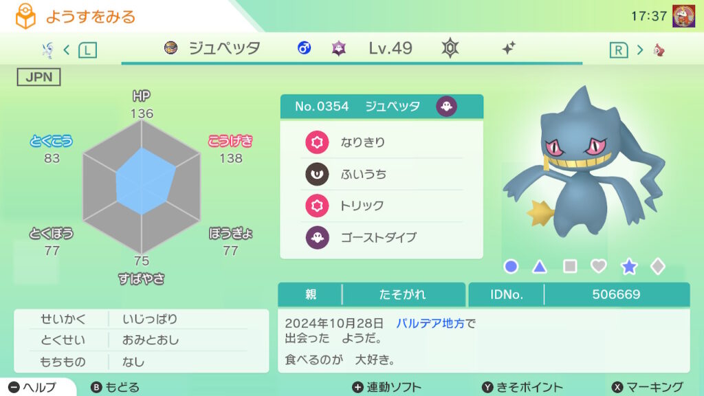 全てのゲット対象個体が”自己産かつゴージャスボール入り”の場合、達成率の横に「★」が付く。