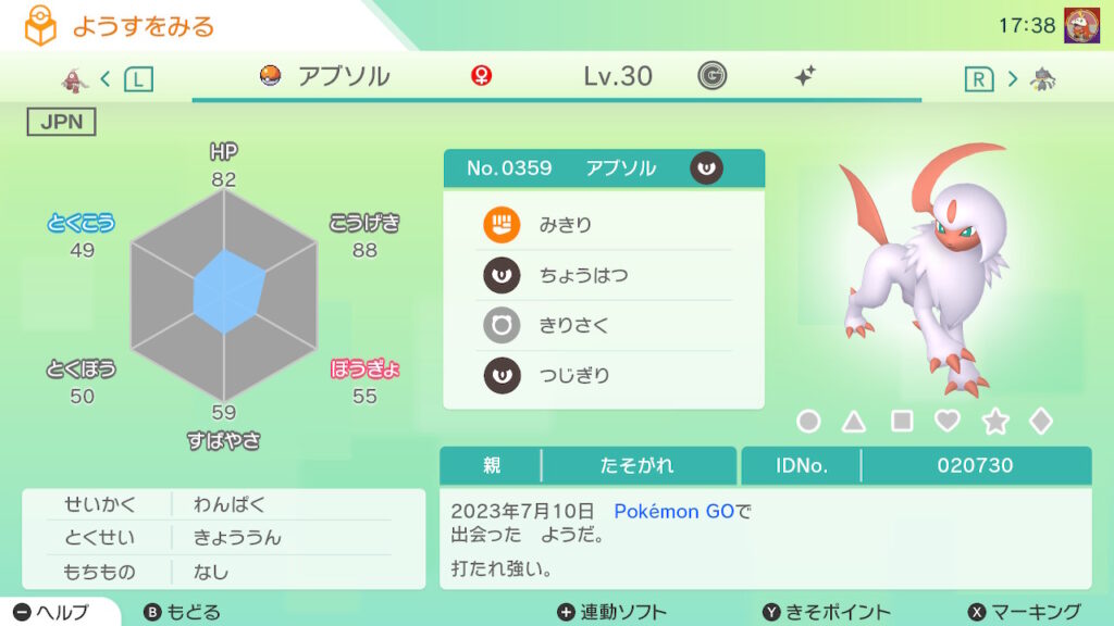 図鑑No.359 『アブソル』の色違いの見分け方をソフト別に解説